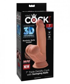 King Cock Plus 7 In Triple Density Cock W/ Swinging Balls Tan