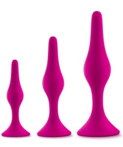 Comes with 3 sizes: Small, Medium and Large. Great for getting acquainted with anal play. Made from pure body safe silicone with a smooth satin finish. Convenient loop handle allows for easy retrieval and provides a safety measure to prevent over insertion. Made from pure body safe silicone and meets or exceeds international safety standards as set forth by CE and ROHS directives. Phthalate and latex free. It is your body be mindful of what you put in it.
