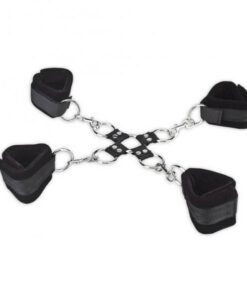 Take total control over your lovers every move with this Extreme Hogtie Kit. This easy to use hogtie kit includes neoprene wrist and ankle cuffs, a heavy duty metal hogtie, and free satin love mask. Enjoy the the thrill of being hogtied without having to worry about complicated techniques and tying elaborate knots. The cuffs attach to the hogtie with spring-loaded metal clips and easily adjust with velcro to fit most sies. Once your lover is on their stomach bound and tied, what happens next is up to you!