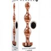 Gender X Gold Digger Large Anal Plug from Evolved Novelties. Big, sleek and stylish. Everything you want in a body safe metal plug! Savor the bulbous, non-porous, shiny shaft with its incremental shapely bulb design and the stylish sparkling black gem at the base! Discover how this shapely metal sculpted plug can enhance your erotic play time and try sensation play by warming or cooling your plug first with water. Features: large rose gold beaded metal plug. Incremental 3 bead shaft design. Cool or warm with water for sensation play. Stylish sparkling black gem base. Made from body safe nonporous Aluminum alloy. Gem made from durable ABS plastic. Wide safety base. Waterproof non-vibrating plug. Made with body safe, phthalate free and latex free materials. Length 5.3 inches, depth 1.57 inches, width 1.57 inches. Insertable 4.75 inches, over 1 inch diameter. Weight under .5 pound. 5 years warranty.