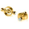 Fetish Fantasy Gold Magnetic Clamps Gold kit includes two nipple clamps. Make your nipples perk with pleasure with these luxurious Magnetic Nipple Clamps. Cast in high quality metal and hand polished to perfection, these jeweled clamps feature a hygienic finish that is sleek, nonporous, and easy to clean. The clamps feature magnets that delicately squeeze your nipple to keep them hard and give you the perfect pinch every time.