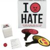 I Hate…The Game For People Who Love To Hate from Kheper Games. The game for people who love to hate. There are three ways to play I HATE. As a Party Game, other players get points when guessing correctly if you hate or love something. As a Drinking Game, drink when you hate something. As a relationship game, two players earn a point each time they both love or hate the same thing. Hours of hilarious entertainment! For 2 to 12 Players. Includes: 1200 things to hate (200 cards), 12 I Love. Play as a party game, drinking game or a with a date. Adult game includes I Hate Sticks, a die and game rules.
