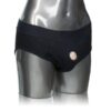 Packer Gear Black Brief Harness XL/2XL from Cal Exotics. Color Black. Materials Cotton, Spandex, Polyester, Nylon. Features Phthalate free. Allergens N/A. 90 day warranty. Bulk weight 3 ounces. Package 4.1 ounces. Package 2 inches by 4 inches by 8.5 inches. Washable. Please note harness only, attachments sold separately.