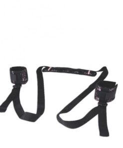 Scandal Over Door Love Swing. Over the door style universal swing harness. Sturdy straps and bar hooks for secure over the door placement. Fully adjustable to fit both standard and oversized doors. Easy to use, and easy to release, double padded arm and thigh straps. Soft and plushy on one side, with designer fabric on the other. Comfortable, adjustable cinch design for customized positioning. Safe and pure for body and pleasure made using phthalate free materials Polyester fabric, polypropylene PP straps, Acrylic dowels, polyoxymethacrylate POM buckles. 15 inches arm cuffs. 30 inches leg cuffs. Bulk weight 12.8 ounces.